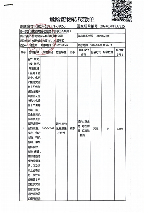 危險(xiǎn)廢物轉(zhuǎn)移聯(lián)單