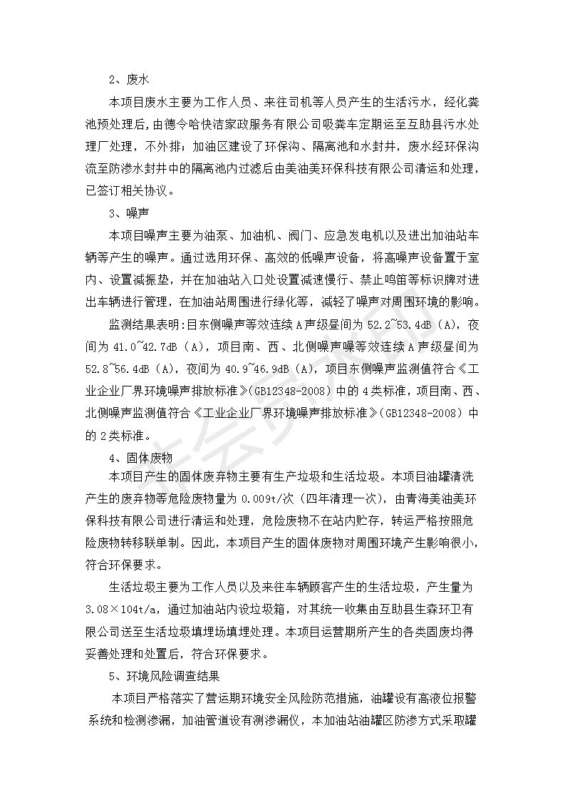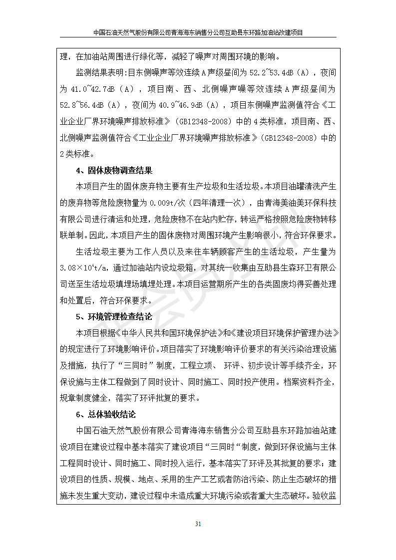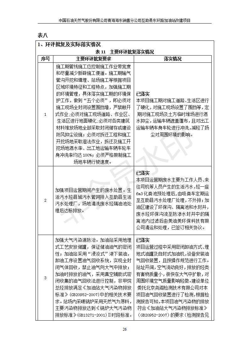 根據(jù)中華人民共和國國務(wù)院令第682號《國務(wù)院關(guān)于修改〈建設(shè)項目環(huán)境保護(hù)管理條例〉的決定》和《建設(shè)項目竣工環(huán)境保護(hù)驗收暫行辦法》(國務(wù)院令682號),互助縣東環(huán)路加油站改建項目(包括竣工環(huán)境保護(hù)驗收監(jiān)測報告表和驗收意見)公示如下。 一、項目名稱:互助縣東環(huán)路加油站改建項目 二、地點(diǎn):青海省海東市互助縣東環(huán)路 六、聯(lián)系電話:0971-6515411 七、公示時間:二〇一九年九月二十七日至二〇一九年十月二十九日 公示期間,對上述公示內(nèi)容如有異議,請以書面形式反饋,個人須署真實姓名,單位須加蓋公章。