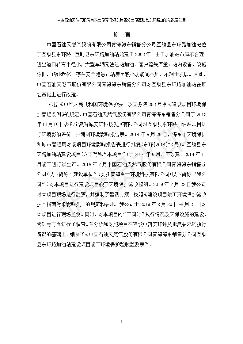 | 上一篇:互助縣東和加油站原址擴(kuò)建項目 竣工環(huán)境保護(hù)驗收監(jiān)測報告表公示 | 下一篇:互助縣沙塘川加油站建設(shè)項目竣工環(huán)境保護(hù)驗收監(jiān)測報告表 |