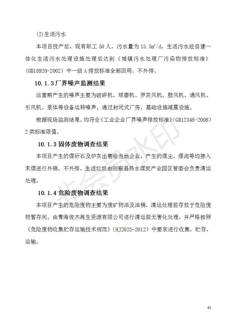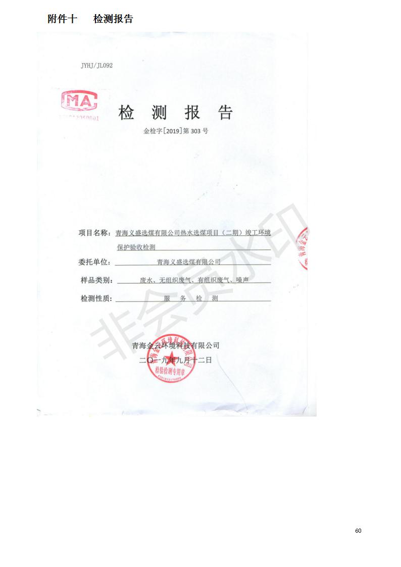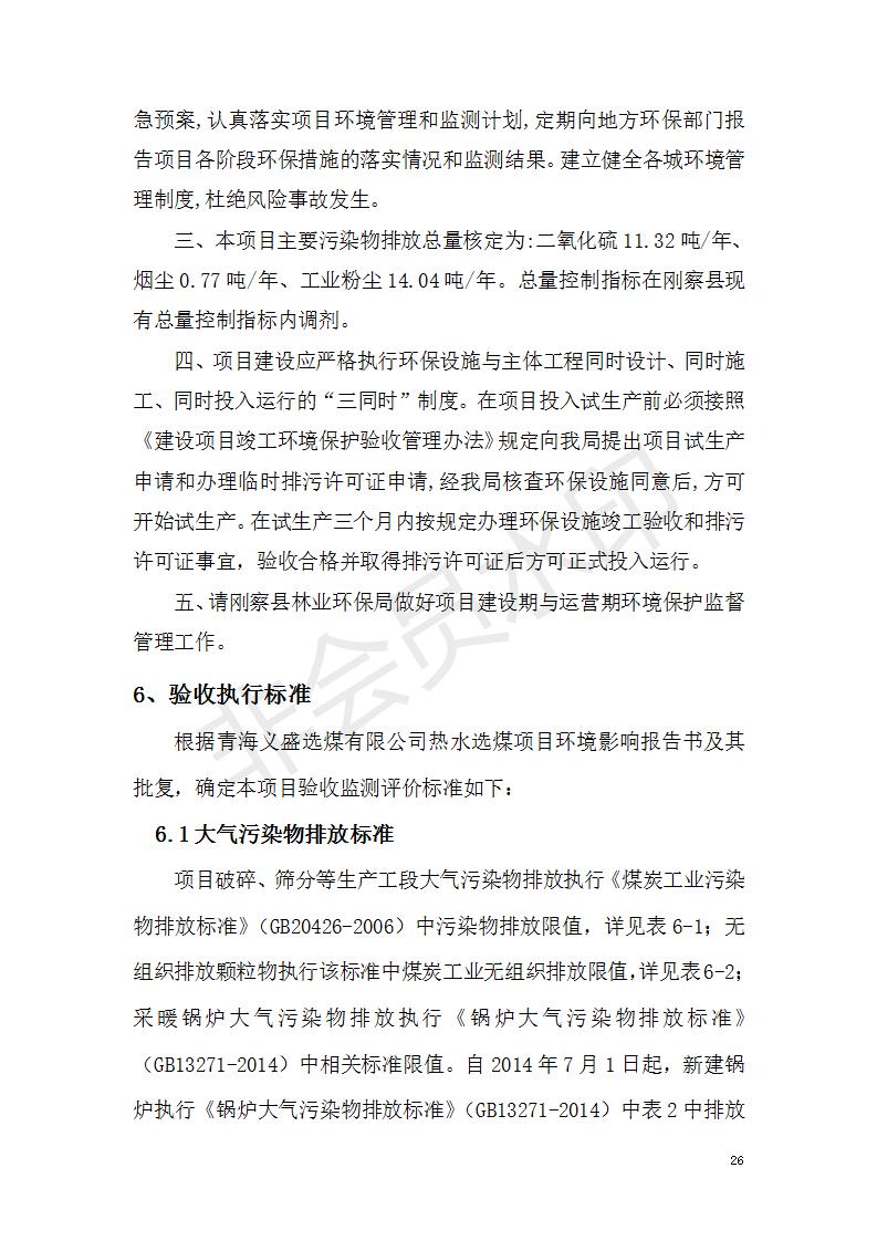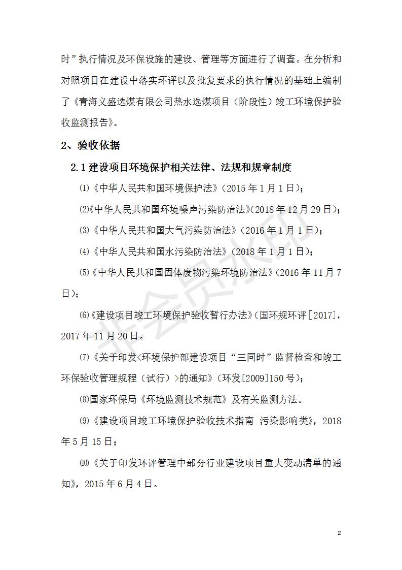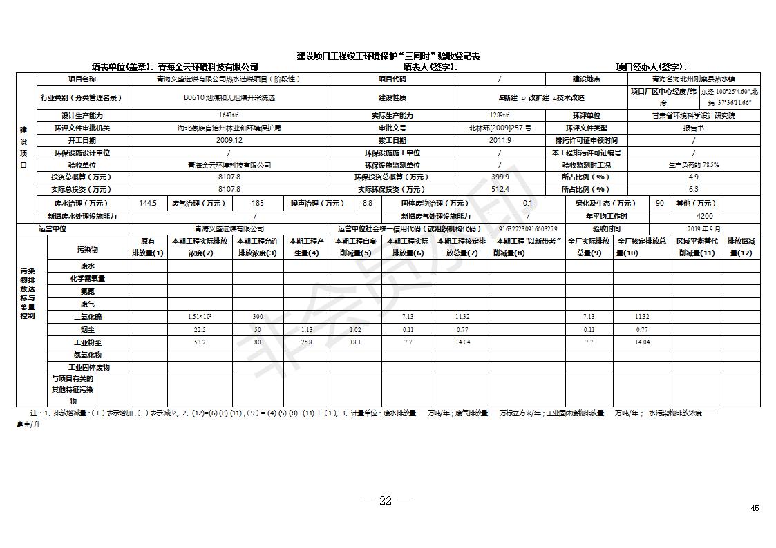 根據(jù)中華人民共和國國務(wù)院令第682號(hào)《國務(wù)院關(guān)于修改〈建設(shè)項(xiàng)目環(huán)境保護(hù)管理?xiàng)l例〉的決定》和《建設(shè)項(xiàng)目竣工環(huán)境保護(hù)驗(yàn)收暫行辦法》(國務(wù)院令682號(hào)),青海義盛選煤有限公司熱水選煤項(xiàng)目(階段性)竣工環(huán)境保護(hù)驗(yàn)收監(jiān)測(cè)報(bào)告(包括竣工環(huán)境保護(hù)驗(yàn)收監(jiān)測(cè)報(bào)告和驗(yàn)收意見)公示如下。 一、項(xiàng)目名稱:青海義盛選煤有限公司熱水選煤項(xiàng)目(階段性) 二、地點(diǎn):剛察縣熱水鎮(zhèn) 此外還包括公用工程系統(tǒng)、消防系統(tǒng)及輔助生產(chǎn)設(shè)施等。 五、聯(lián)系人:張工六、聯(lián)系電話:0971-6515411 七、公示時(shí)間:二〇一九年十一月十二日至二〇一九年十二月九日