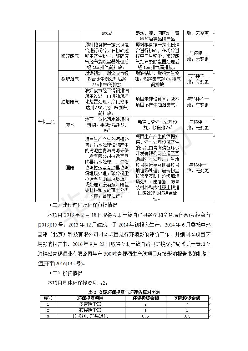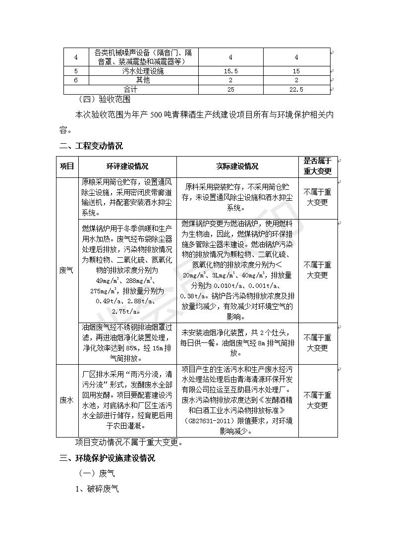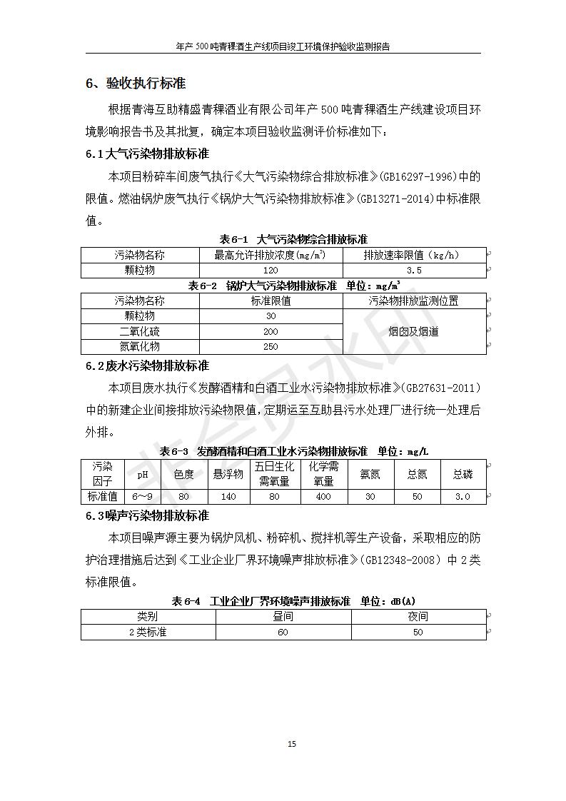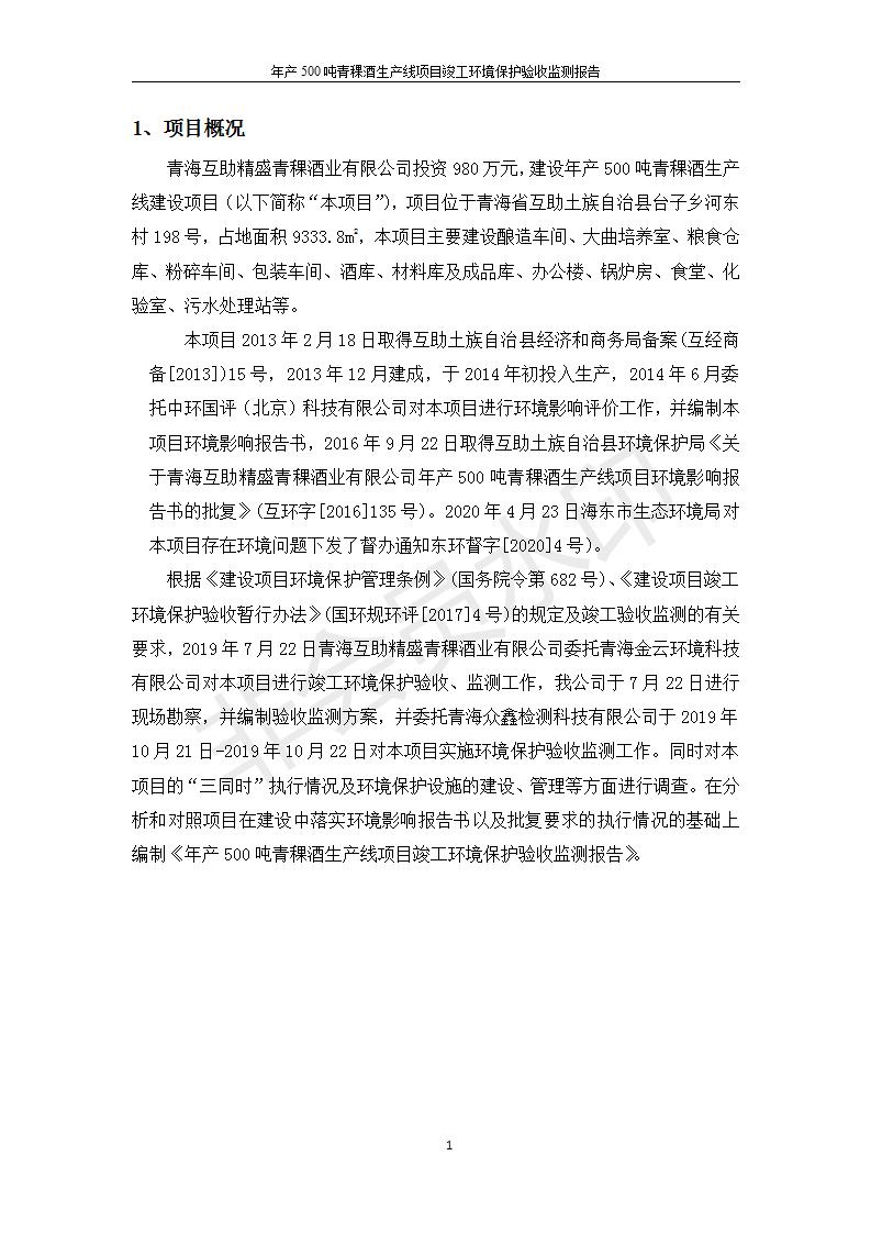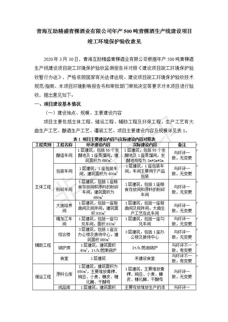 根據(jù)中華人民共和國國務(wù)院令第682號《國務(wù)院關(guān)于修改〈建設(shè)項目環(huán)境保護管理條例〉的決定》和《建設(shè)項目竣工環(huán)境保護驗收暫行辦法》(國務(wù)院令682號),綜合檢測實驗室建設(shè)項目(包括竣工環(huán)境保護驗收監(jiān)測報告表和驗收意見)公示如下。 一、項目名稱:青;ブ⑶囡茦I(yè)有限公司年產(chǎn)500噸青稞酒業(yè)生產(chǎn)線建設(shè)項目 二、地點:青海省海東市互助土族自治縣臺子鄉(xiāng)河東村198號