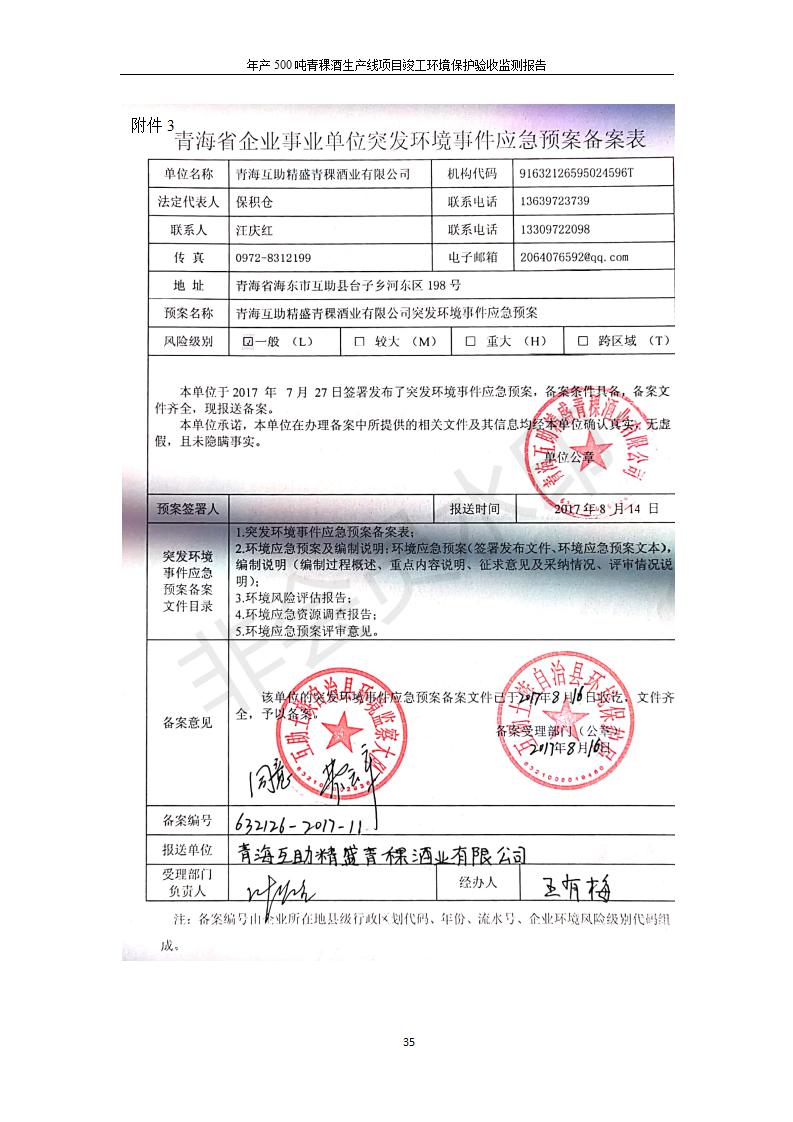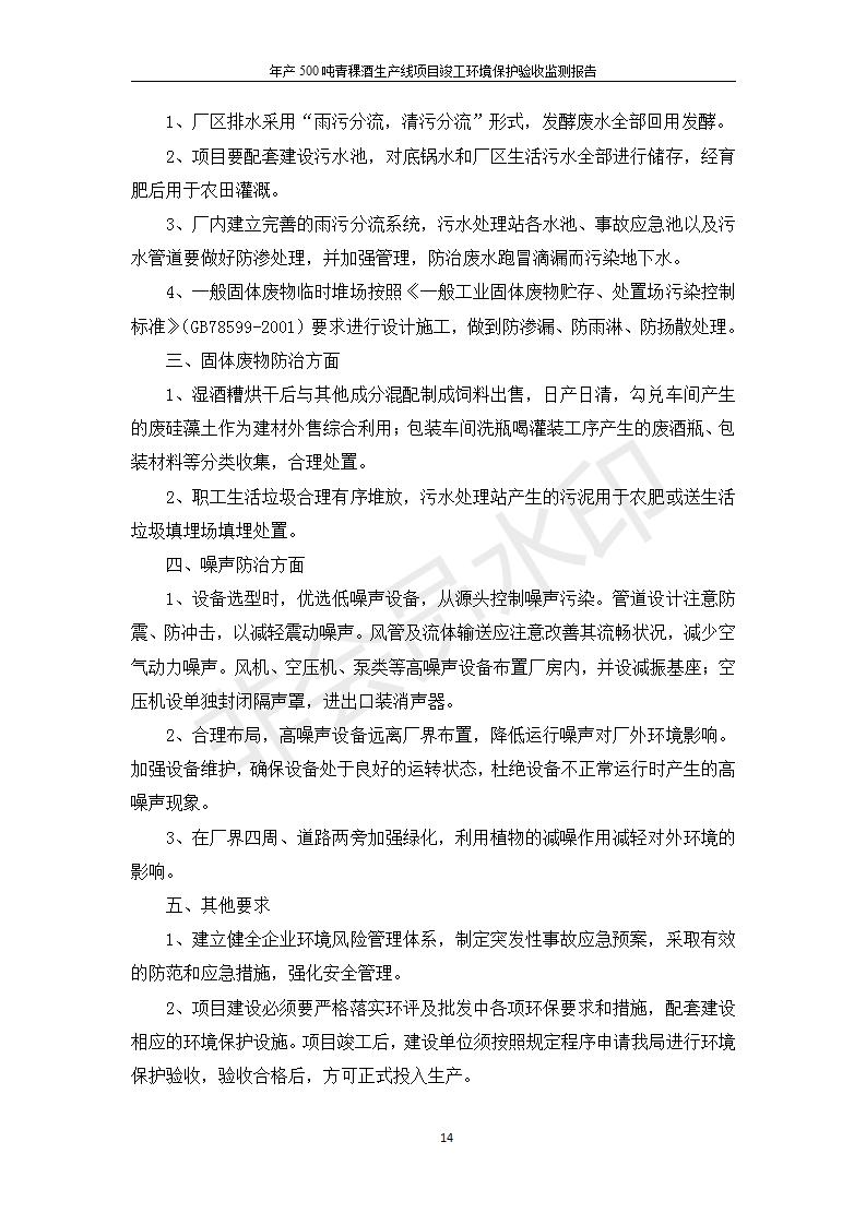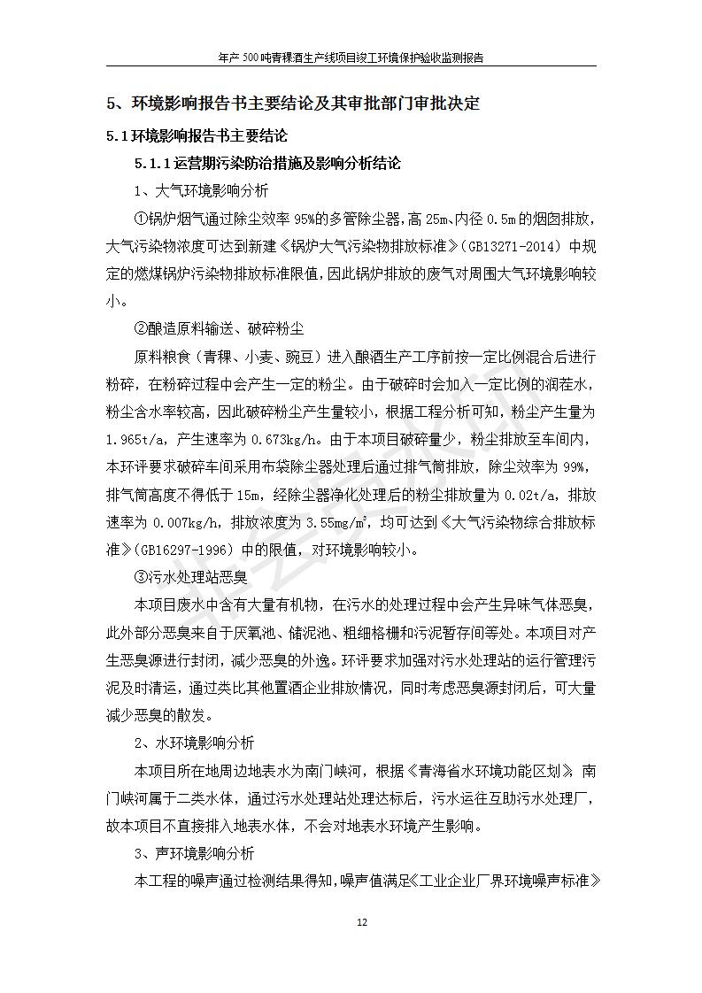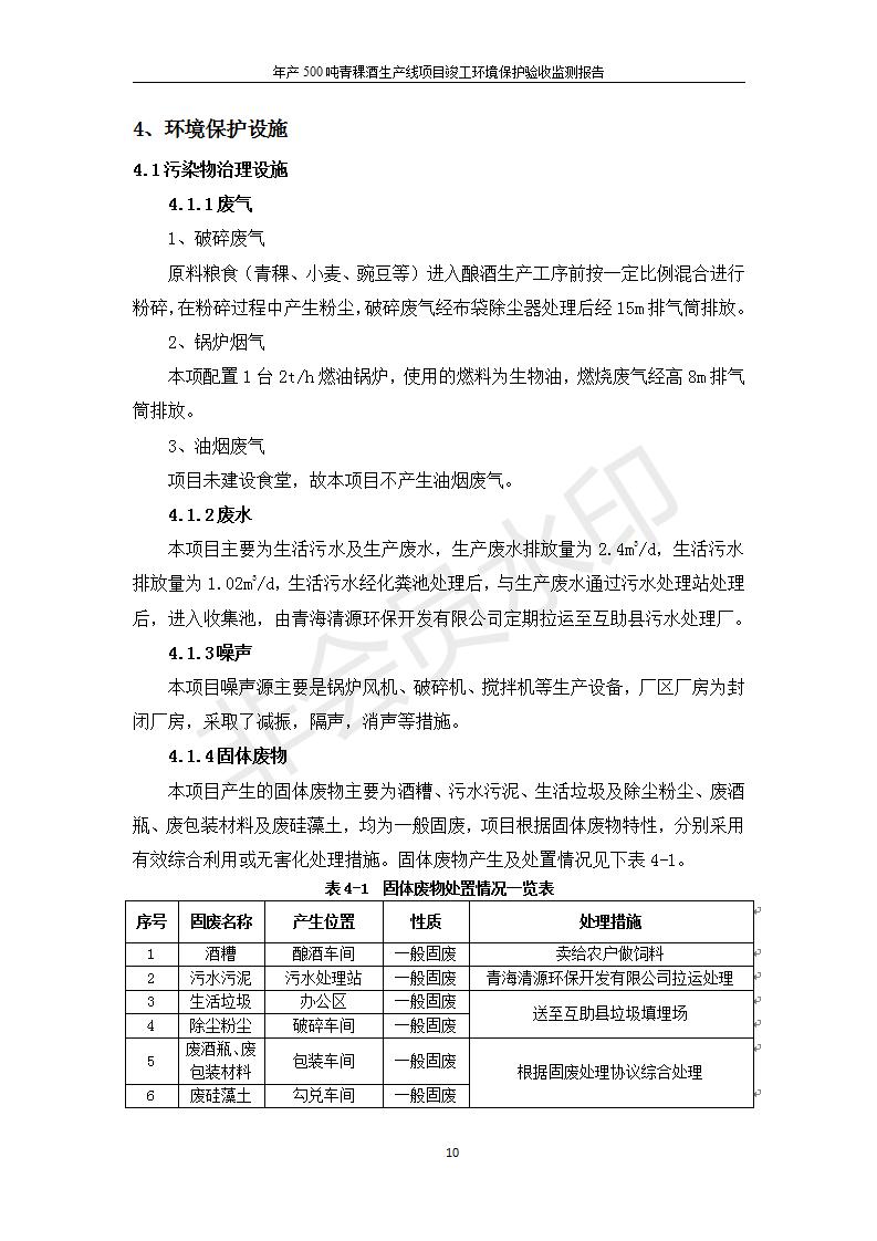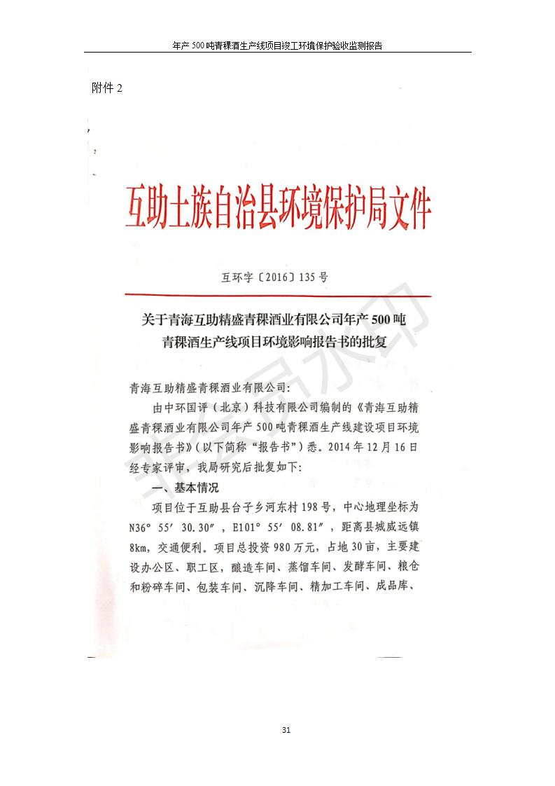 根據(jù)中華人民共和國國務(wù)院令第682號《國務(wù)院關(guān)于修改〈建設(shè)項目環(huán)境保護管理條例〉的決定》和《建設(shè)項目竣工環(huán)境保護驗收暫行辦法》(國務(wù)院令682號),綜合檢測實驗室建設(shè)項目(包括竣工環(huán)境保護驗收監(jiān)測報告表和驗收意見)公示如下。 一、項目名稱:青;ブ⑶囡茦I(yè)有限公司年產(chǎn)500噸青稞酒業(yè)生產(chǎn)線建設(shè)項目 二、地點:青海省海東市互助土族自治縣臺子鄉(xiāng)河東村198號