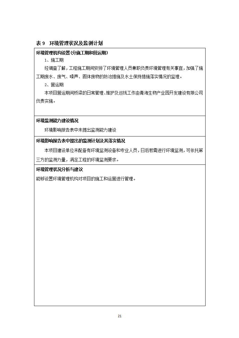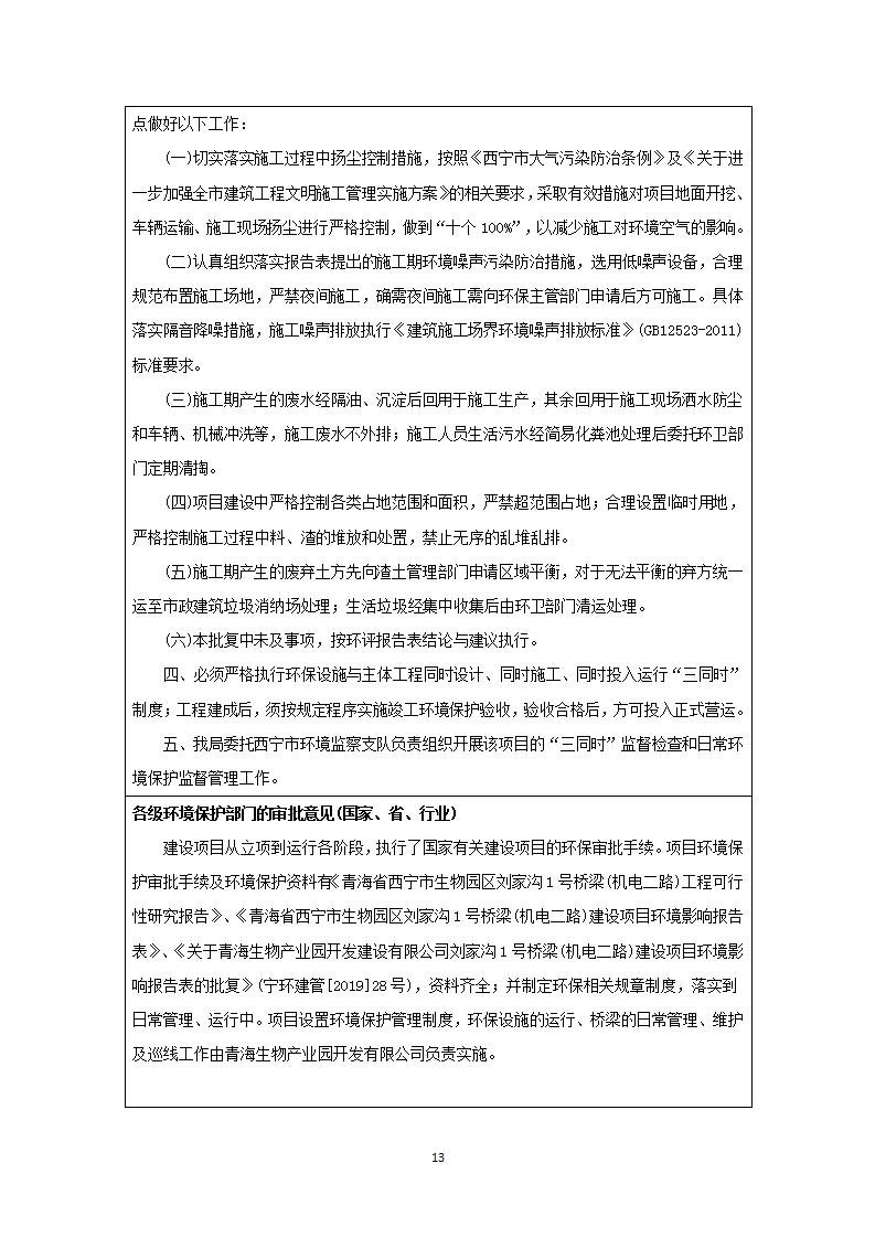 根據(jù)中華人民共和國(guó)國(guó)務(wù)院令第682號(hào)《國(guó)務(wù)院關(guān)于修改〈建設(shè)項(xiàng)目環(huán)境保護(hù)管理?xiàng)l例〉的決定》和《建設(shè)項(xiàng)目竣工環(huán)境保護(hù)驗(yàn)收暫行辦法》(國(guó)務(wù)院令682號(hào)),劉家溝1號(hào)橋梁(機(jī)電二路)建設(shè)項(xiàng)目竣工環(huán)境保護(hù)驗(yàn)收調(diào)查表,(包括竣工環(huán)境保護(hù)驗(yàn)收調(diào)查表和驗(yàn)收意見)公示如下。 一、項(xiàng)目名稱:劉家溝1號(hào)橋梁(機(jī)電二路)建設(shè)項(xiàng)目竣工環(huán)境保護(hù)驗(yàn)收調(diào)查表 二、地點(diǎn):青海省西寧市城北區(qū)生物園區(qū) 三、建設(shè)單位:青海生物產(chǎn)業(yè)園開發(fā)建設(shè)有限公司 四、建設(shè)內(nèi)容:本項(xiàng)目主要建設(shè)內(nèi)容為橋梁工程、接線路基等工程。項(xiàng)目南北走向,北起機(jī)電二路,南至寧張路,項(xiàng)目全長(zhǎng)150m. 五、聯(lián)系人:張工 六、聯(lián)系電 話:0971-6515411 七、公示時(shí)間:二〇二〇年六月二日至二〇二〇年六月三十日 公示期間,對(duì)上述公示內(nèi)容如有異議,請(qǐng)以書面形式反饋,個(gè)人須署真實(shí)姓名,單位須加蓋公章。 |