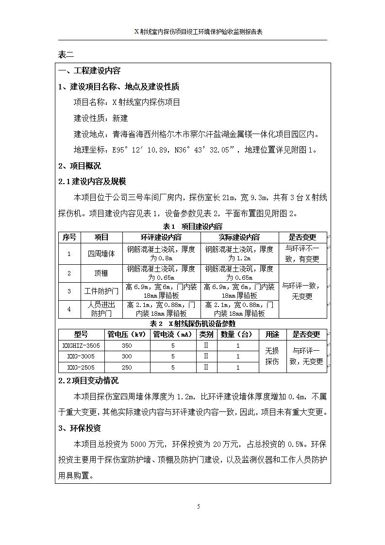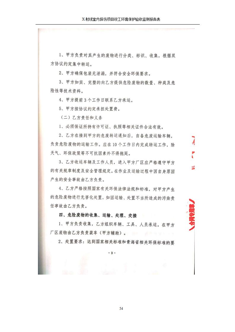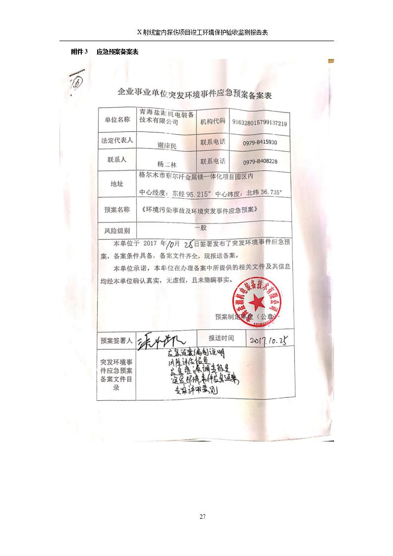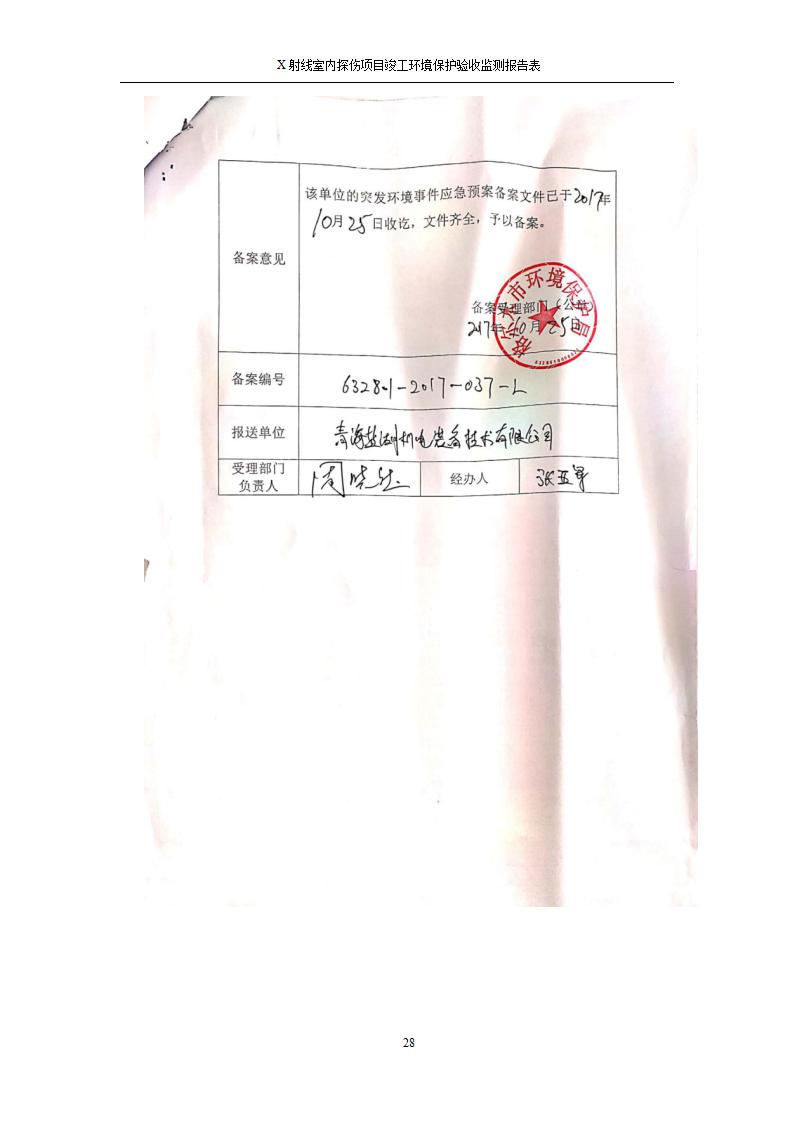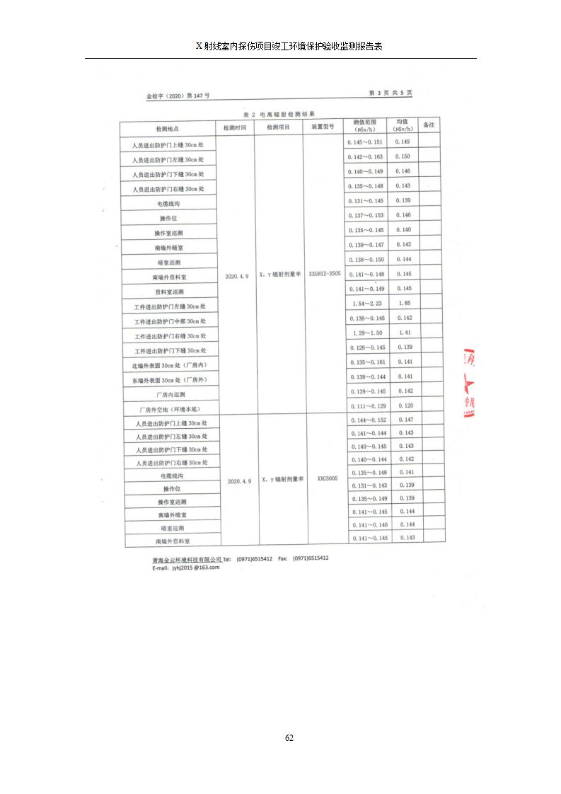 根據(jù)中華人民共和國國務(wù)院令第682號《國務(wù)院關(guān)于修改〈建設(shè)項(xiàng)目環(huán)境保護(hù)管理?xiàng)l例〉的決定》和《建設(shè)項(xiàng)目竣工環(huán)境保護(hù)驗(yàn)收暫行辦法》(國務(wù)院令682號),青海鹽湖機(jī)電裝備技術(shù)有限公司X射線室內(nèi)探傷項(xiàng)目竣工環(huán)境保護(hù)驗(yàn)收監(jiān)測報告表公示如下。 一、項(xiàng)目名稱:X射線室內(nèi)探傷項(xiàng)目竣工環(huán)境保護(hù)驗(yàn)收監(jiān)測報告表 二、地點(diǎn):青海省海西州格爾木市察爾汗鹽湖金屬鎂一體化項(xiàng)目園區(qū)內(nèi) 三、建設(shè)單位:青海鹽湖機(jī)電裝備技術(shù)有限公司 四、建設(shè)內(nèi)容:本項(xiàng)目位于公司三號車間廠房內(nèi),探傷室長21m,寬9.3m,共有3臺X射線探傷機(jī)。 五、聯(lián)系人:楊工 六、聯(lián)系電 話:0971-6515411 七、公示時間:二〇二〇年七月十日至二〇二〇年八月六日 公示期間,對上述公示內(nèi)容如有異議,請以書面形式反饋,個人須署真實(shí)姓名,單位須加蓋公章。