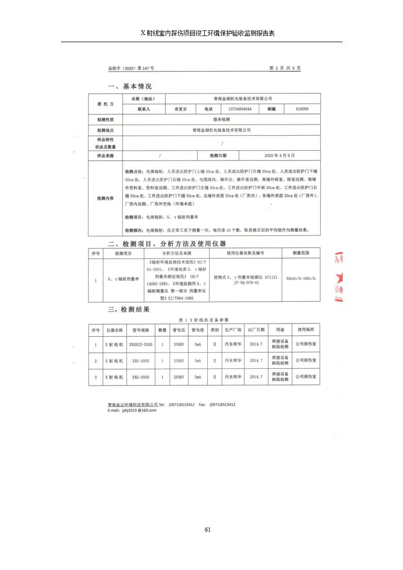 青海鹽湖機(jī)電裝備技術(shù)有限公司X射線室內(nèi)探傷項(xiàng)目竣工環(huán)境保護(hù)驗(yàn)收監(jiān)測報告表公示發(fā)布日期:(2020-7-10) 點(diǎn)擊次數(shù):3314 |