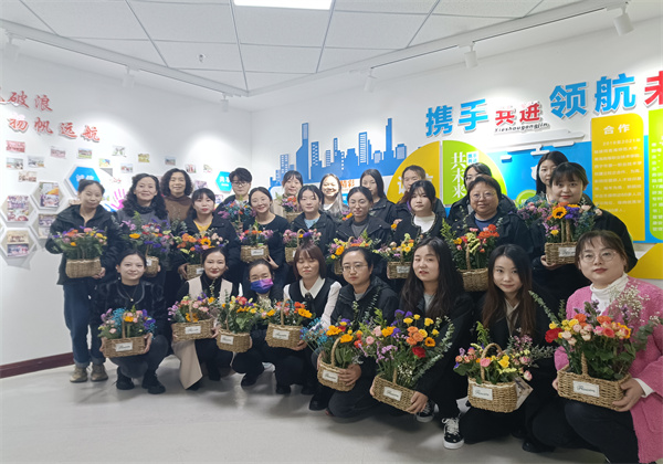 接下來,我們的女職工一起完成了一件特別有意義的活動。插花是一門具有濃郁生活氣息的高雅藝術(shù)活動,不僅能豐富我們的日常生活,美化環(huán)境,而且還能提高個人的藝術(shù)修養(yǎng),愿精美的藝術(shù)創(chuàng)作讓您在百花盛開的美景中清新恰然,陶醉其中,給您的生活添姿加彩,蘇聯(lián)教育家莫博林斯基說:人們的智慧在手指尖上,插花藝術(shù)既讓大家在動手的造型中充分開啟智慧,又能在與花為伴中感受大自然的美,這種人與自然融合的美譽(yù),帶給大家的將是凈化心靈,陶治情操,將是喜悅的歡樂,將會使大家更加熱愛生活。